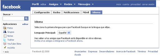 Ya puedes elegir el lenguaje "español" en Facebook (spanish Facebook).