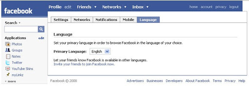 Ya puedes elegir el lenguaje "español" en Facebook (spanish Facebook).